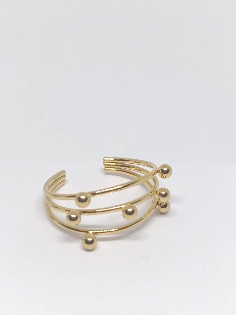 El Anillo Órbita es una pieza moderna y elegante que combina tres aros finos decorados con pequeñas esferas que le aportan movimiento y un toque único. Su diseño envolvente es ligero, cómodo y perfecto para llevar a diario o para completar un look más sofisticado. Además, su estructura abierta lo convierte en un anillo ajustable, ideal para cualquier talla.