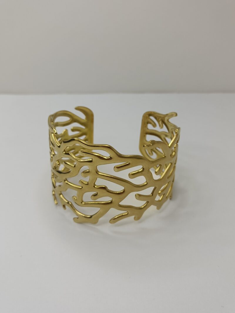 El Brazalete Coral es una joya con carácter, inspirada en las formas orgánicas del coral marino. Su diseño calado y envolvente crea un efecto visual elegante y sofisticado, convirtiéndolo en el complemento perfecto para elevar cualquier look.