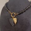 Las cuentas negras facetadas aportan brillo y textura, mientras que los detalles dorados y el colgante en acero inoxidable añaden un toque de lujo que no pasa desapercibido. Es un collar llamativo, resistente y perfecto para darle personalidad a cualquier look.