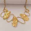 La cadena dorada y el diseño artístico del collar lo convierten en una pieza ideal para destacar en ocasiones especiales o para elevar un outfit sencillo. Fabricado en acero inoxidable, mantiene su brillo y es perfecto para uso diario.