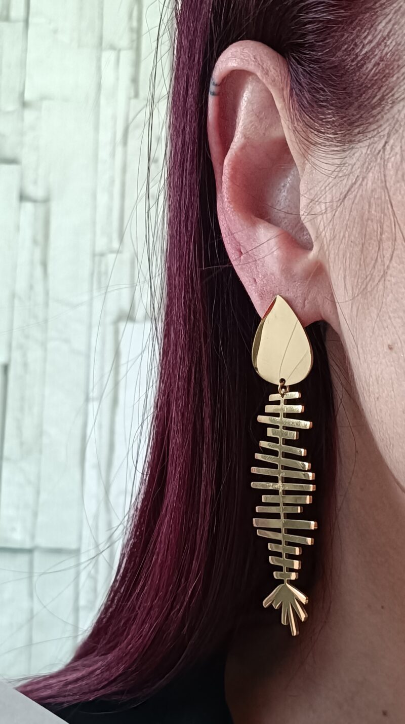 Los Pendientes Espina destacan por su diseño atrevido y moderno, inspirado en siluetas organicas. Fabricados en acero inoxidable con baño en oro de alta calidad, son ligeros, llamativos y perfectos para elevar cualquier look. Su movimiento aporta dinamismo y hacen que el rostro se vea más estilizado.