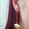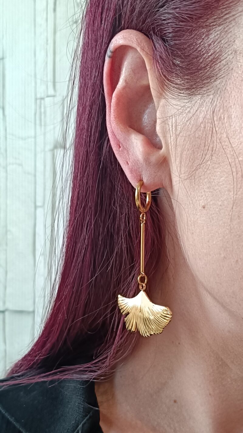 Los Pendientes Laia están inspirados en la delicada forma de la hoja de ginkgo, símbolo de belleza, paz y longevidad. Su diseño ligero y lleno de movimiento combina un aro fino con una varilla estilizada que sostiene la hoja texturizada, creando un efecto elegante y sofisticado al llevarlos puestos.
