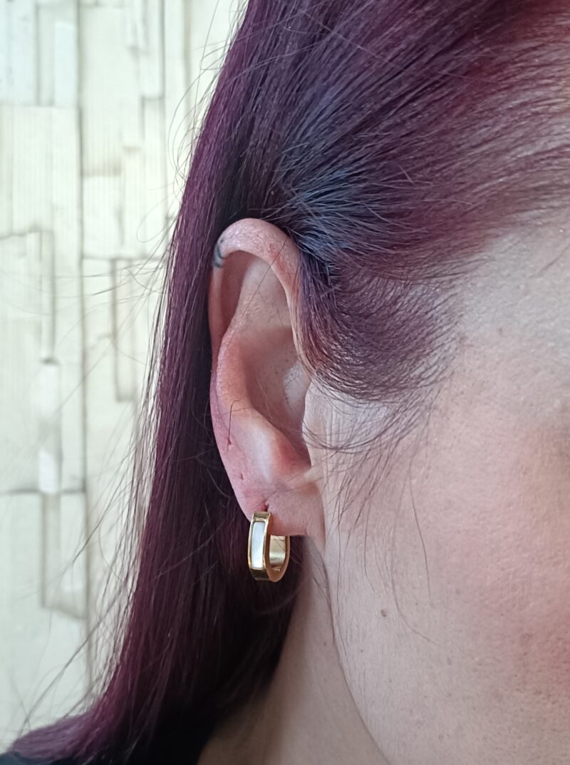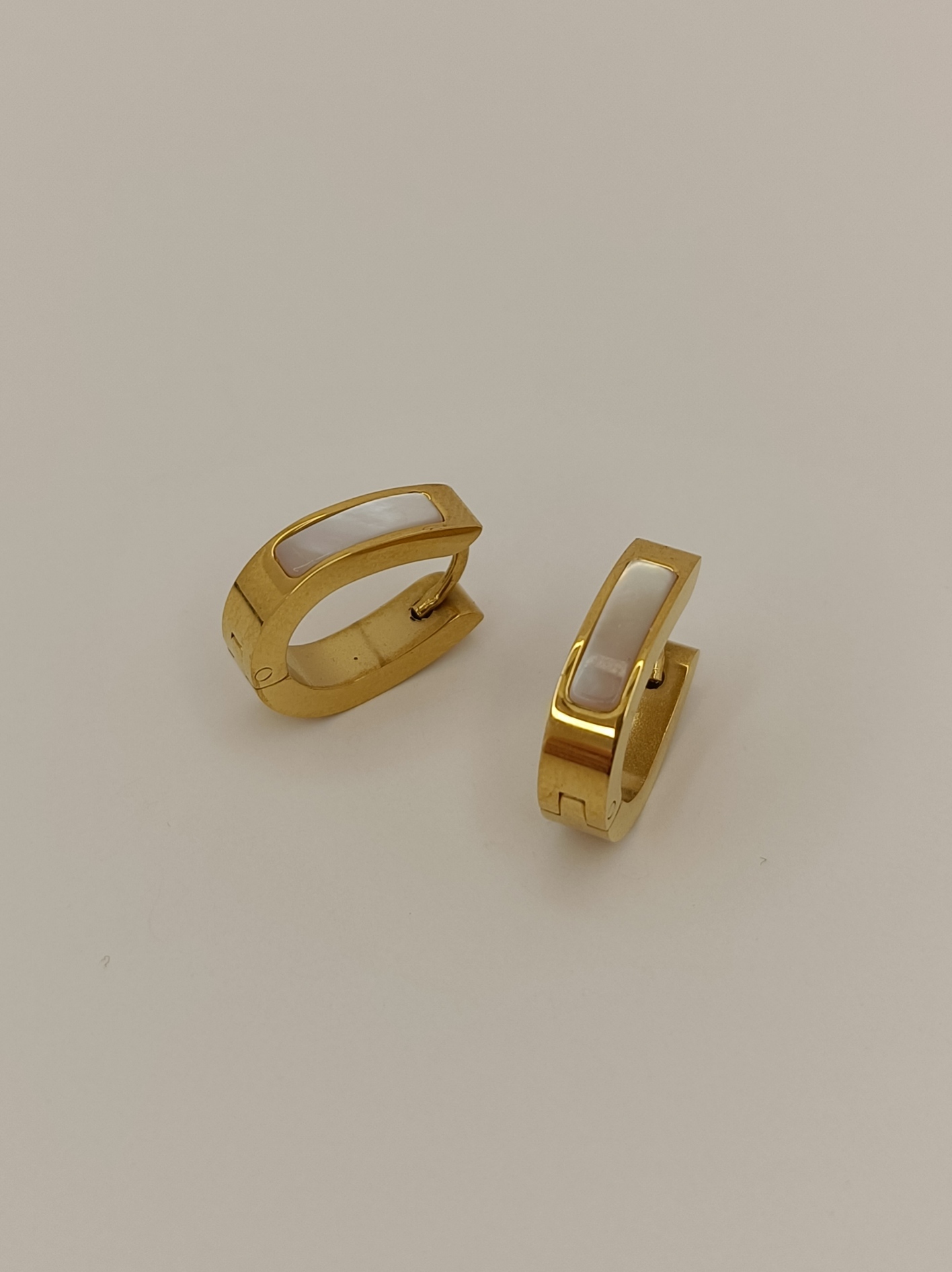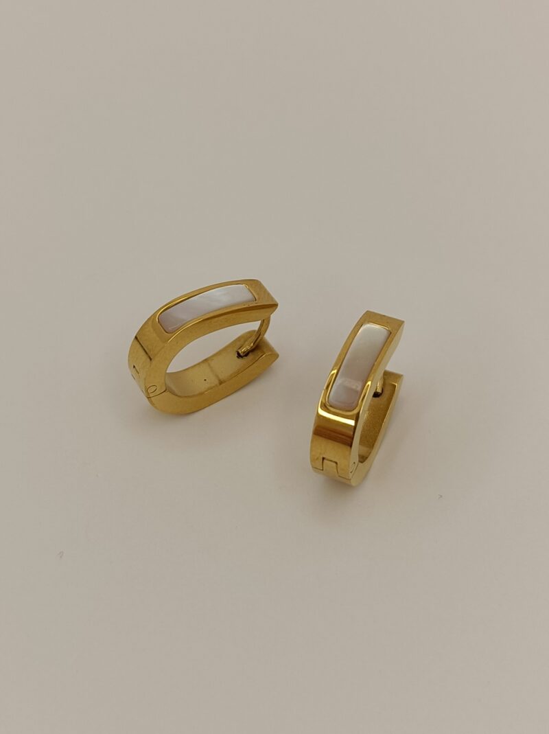 Los Pendientes Mary son pura delicadeza. Su diseño limpio y moderno, realzado por una pieza central con efecto nacarado, aporta un brillo suave y elegante que ilumina el rostro de forma natural.