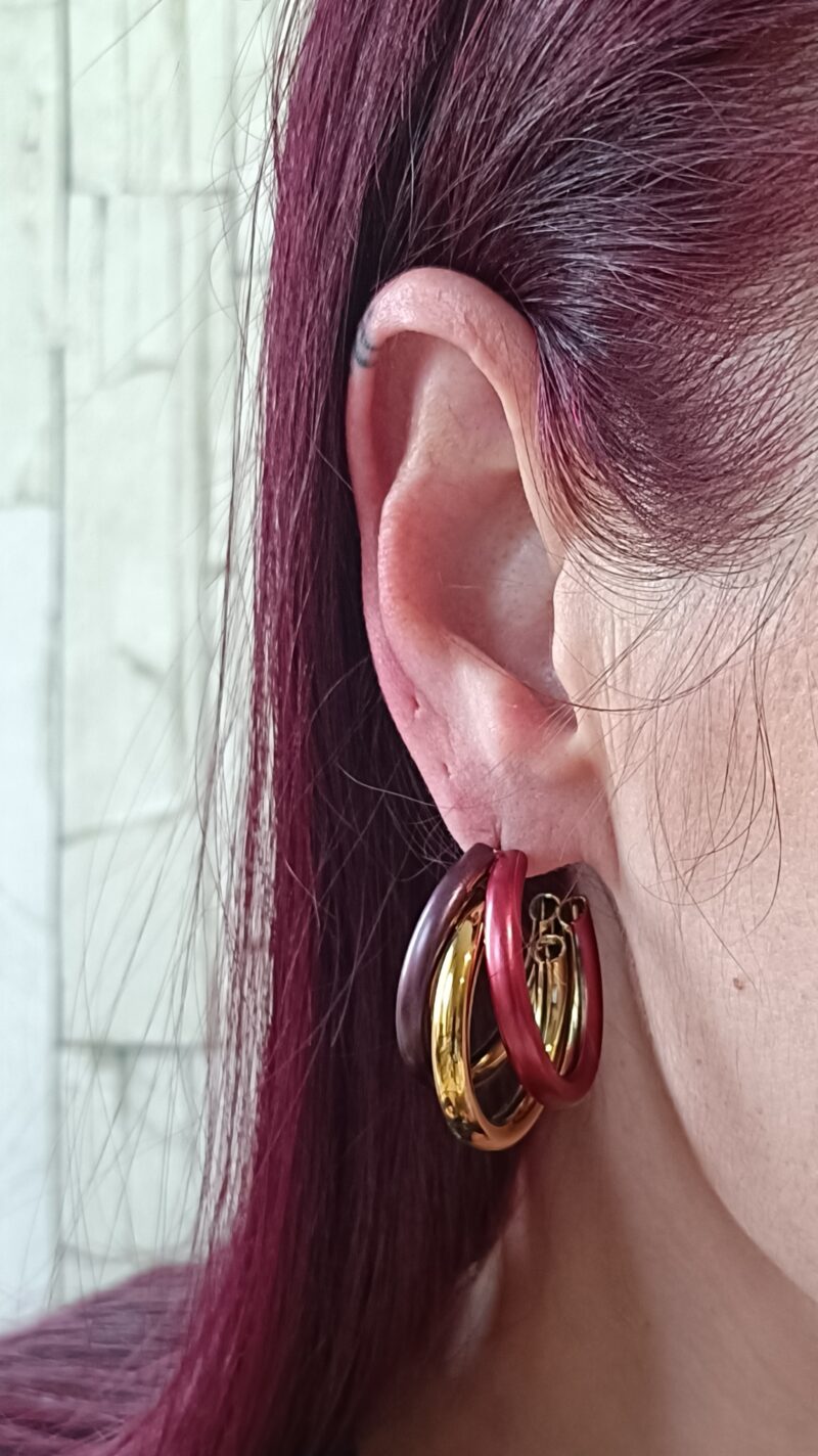Los Aros Trilogía Ébano y Oro son una declaración de estilo que equilibra la audacia con la sofisticación. Inspirados en la riqueza de las gemas preciosas, estos pendientes presentan un diseño de tres aros entrelazados de diferente grosor y color, que dan un efecto voluminoso y tridimensional.